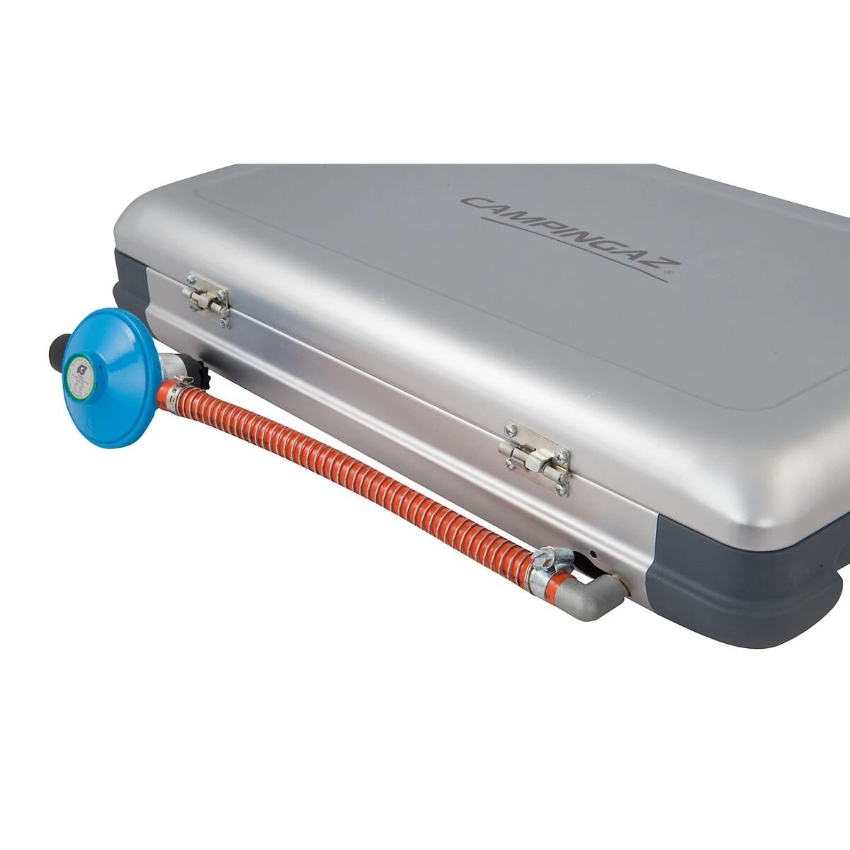 The Camping Kitchen 2 CV PZ is a compact stove, with two burners, a piezo ignition and a solid, durable design. Designed to sit inside its own carry case, the Camping Kitchen PZ is a portable cooker, working from CV 470 gas cylinders, as opposed to the larger butane bottles.