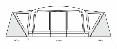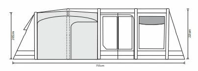 However, the main advantage of the Airedale 9.0DSE is the dual-sided extensions, pre-built onto the side of the tunnel structure to the rear back left and back right, offering more storage space, living space, and sleeping space. The right extension comes with a 2-berth inner as standard, taking the overall capacity to 9 people, but an additional inner (ORBK8732) can be added to the left side (sold separately) to create even more sleeping space.
