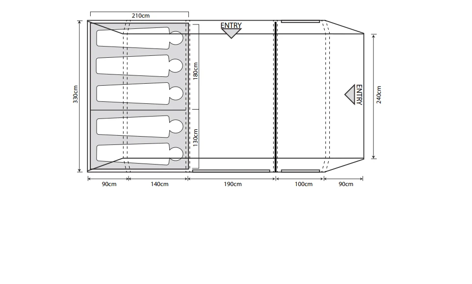 Featuring a three-zone design, which has a large front porch, and a living space featuring a fully sewn-in groundsheet throughout. The design offers great flexibility and storage to the camper, as it has versatile living and sleeping space. Additionally, the sleeping space has darkened, twilight fabrics which help to reduce early morning light in the sleeping quarters. A great package, which really offers suberb value-for-money.