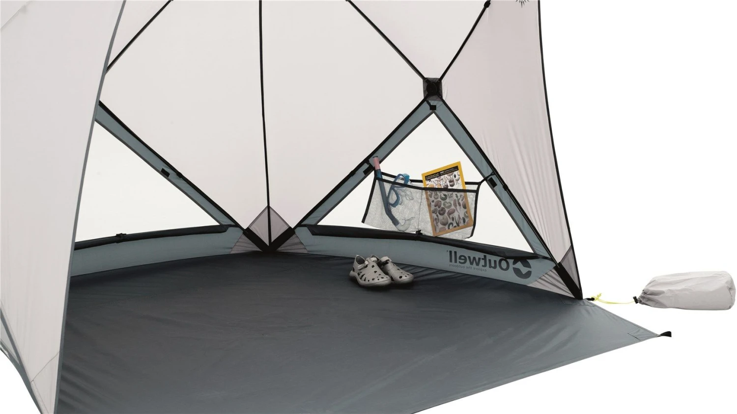 The Compton Beach Shelter by Outwell, a new addition for those needing some form of UV and wind shelter from the elements, whilst at the beach. The shelter can be secured via pegs, or the nylon weight bags, which can be filled with sand to weigh the shelter down. The Compton is very quick to pitch, and features a sewn-in groundsheet and mesh windows. Perfect for family days out at the beach.