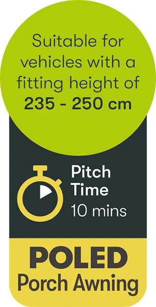 A simple, no-nonsense, affordable porch awning, designed with a 75 Denier polyester fabric, to ensure it is extremely lightweight, and perfect for touring. The weight of the fabric makes it incredibly easy to pull through the awning rail for one person, making it ideal for those who typically set it up on their own. Further to this, the minimal quick-pitch frame system allows it to be erected within 15 minutes, giving far more leisure time.