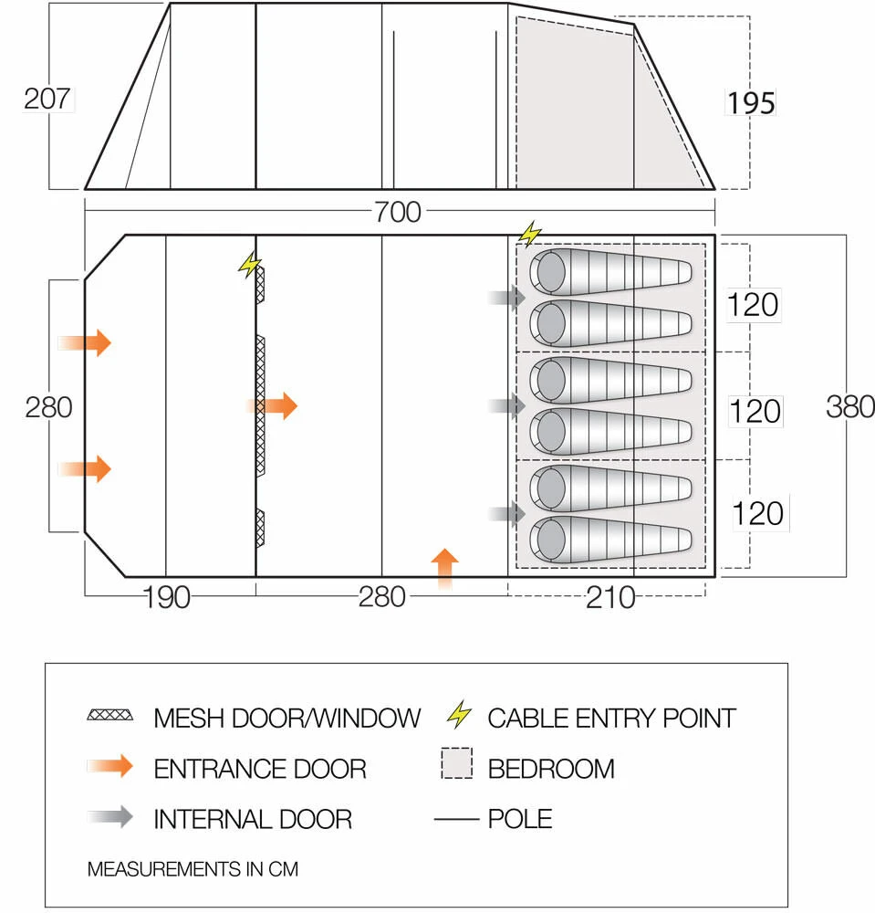 The Stargrove is part of the Experience collection from Vango, offering an Entry-Level collection, these are ideal for first-time campers wanting a reliable family tent at a great value for money price. The Experience range features a 70-Denier polyester, with a 3000mm Hydrostatic Head and a sewn-in groundsheet throughout the living space. Also featuring a three-zone design, with a large porch, and double living and sleeping space, with full standing height throughout.