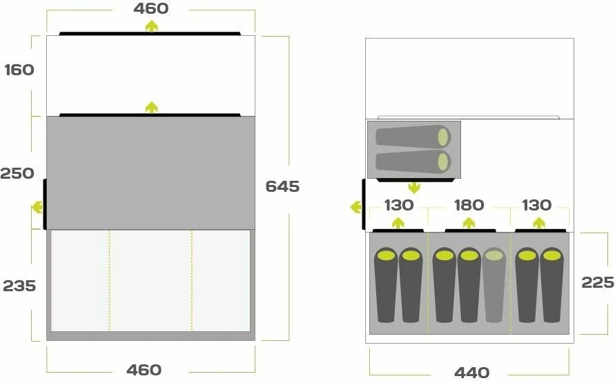 The ALL-NEW Zempire Evo TXL Tent (2020) is perfect for larger groups or families. The Evo TXL boasts a new style of inflatable tubes, with several angles on the beam, to create greater height, rigidity and strength throughout. Furthermore, it offers a fully sewn-in groundsheet in the living space, an extended front porch to the front for additional living and storage space, which can be sealed to create an enclosed porch, with the purchase of the front wall. The polyester flysheet has a denier of 150, making it highly durable, and offers the best ratio of weight / strength – allowing the product to come in at a total weight of 31.8kg, which for a 9 person model, is exceptional.